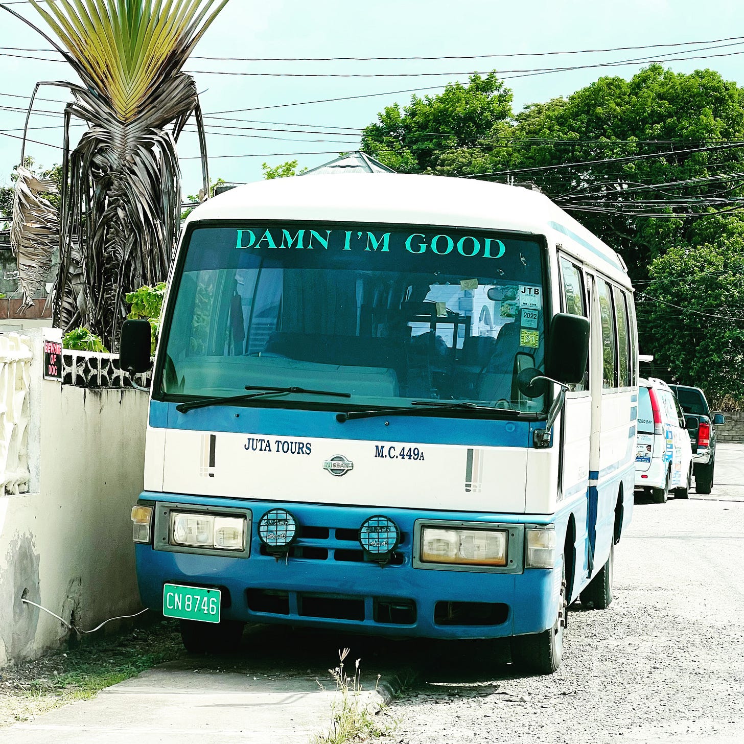 That’s the jaunty expression on a bus in Westgreen Crescent, my family’s neighborhood. It’s a feature, a fixture. What a great thing for a bus to say.